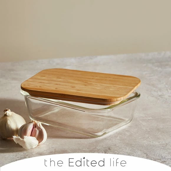 Hot Sale πŸ₯° The Edited Life Glass Food Storage Bamboo Lids Rectangular 990ml ❀️