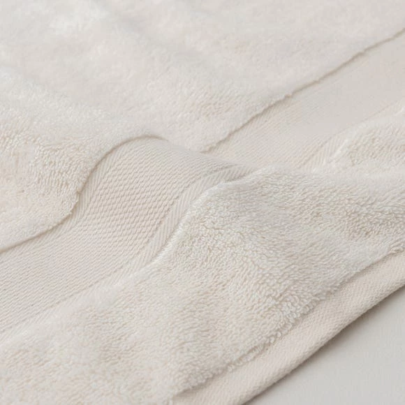 Pamper yourself with our Naturally Soft Towel, this range features a beautiful natural colour, perfect for a timeless and feminine bathroom.Our Naturally Soft Towel range is crafted from responsibly sourced cotton and viscose blend. In a 550gsm weight our towel is plush and silky, and the addition of viscose fibres replacing some cotton content enhances the absorbency, durability and natural softness of the towel.