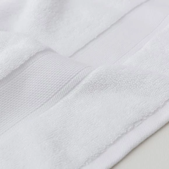 Pamper yourself with our Naturally Soft Towel which comes in an elegant white colour. Our Naturally Soft Towel range is crafted from responsibly sourced cotton and viscose blend. In a 550gsm weight our towel is plush and silky, and the addition of viscose fibres replacing some cotton content enhances the absorbency, durability and natural softness of the towel.