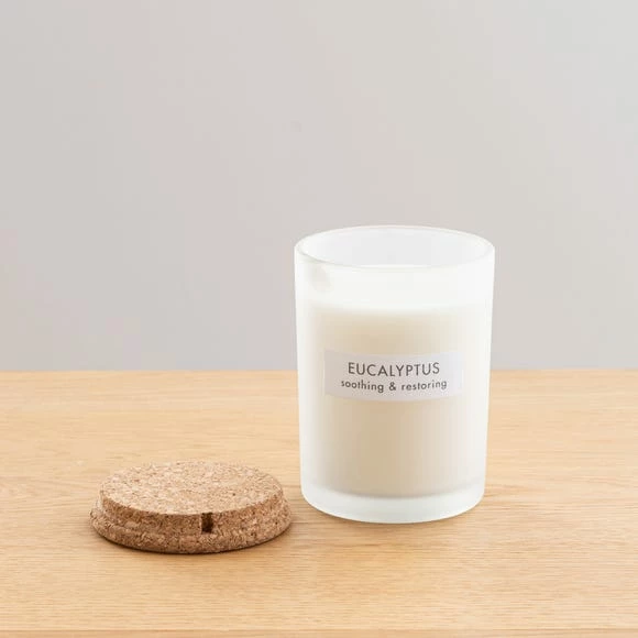 Beautifully presented in a sleek, clean glass jar with a natural cork lid. This wellness soy candle features a fresh and vibrant scent infused with freshly picked eucalyptus leaves, perfect to help soothe and restore. Ideal to create a fresh clean ambience in the home, this soy wax blend candle with natural oils lasts up to 45 hours and the modern glass jar can be reused once the wax has melted. When you’re craving a calming moment, try lighting a candle. The gentle flicker of the flame, soft illumination and beautiful scent can be wonderfully soothing.